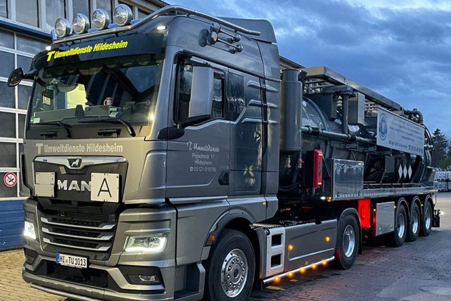 Nach langem Warten konnten wir im Januar 2022 endlich unseren neuen MAN Saug-Sattel abholen und in Betrieb nehmen.